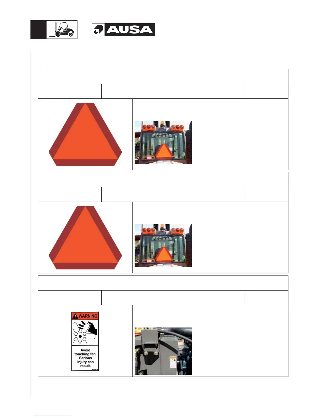 REFLECTIVE TRIANGLE WITH PLATE. (MACHINE WITH OPEN CAB) (USA)