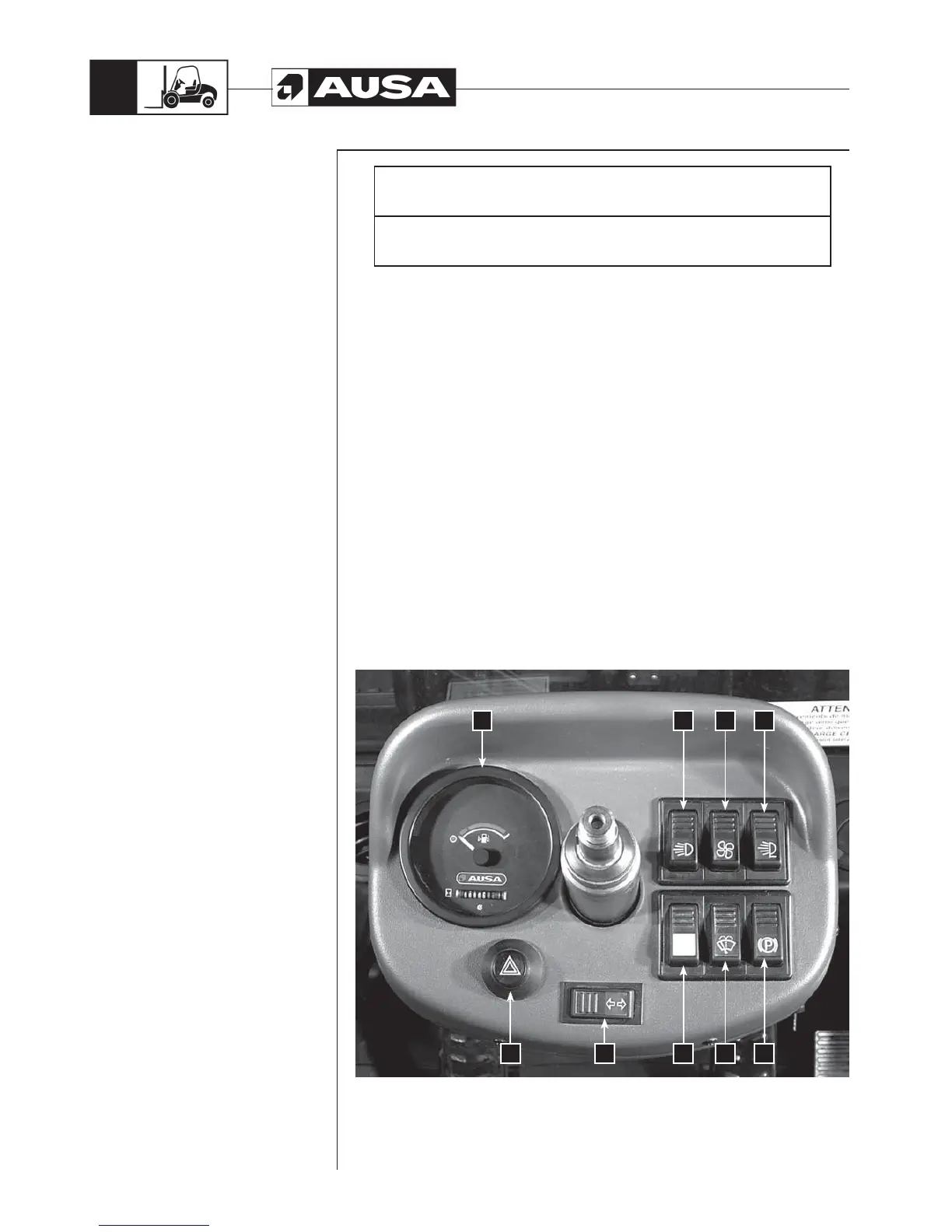 5- Parking brake. To activate the forklift parking brake, press the switch.