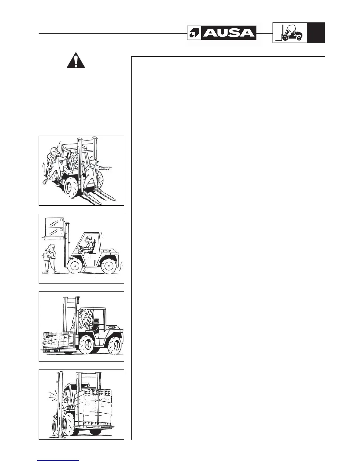 Never put any part of your body between the fork mast and the forklift body. (fig. 3).