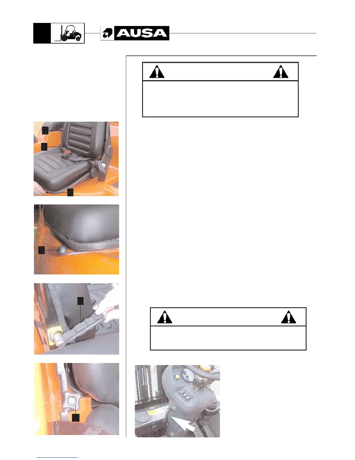 Before starting work with the forklift each day adjust the seat for the most comfortable position.