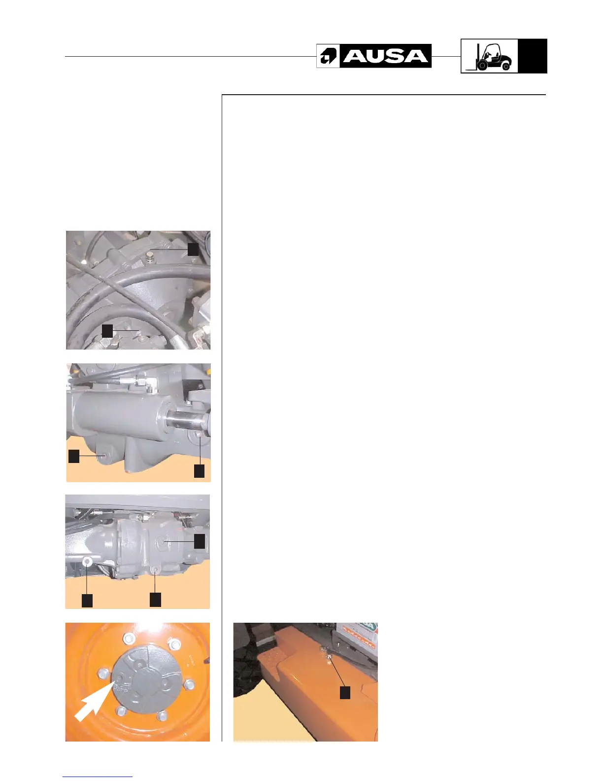 Check the oil level and fill through the arrowed plug. Previously turn the hub until the words “Oil
