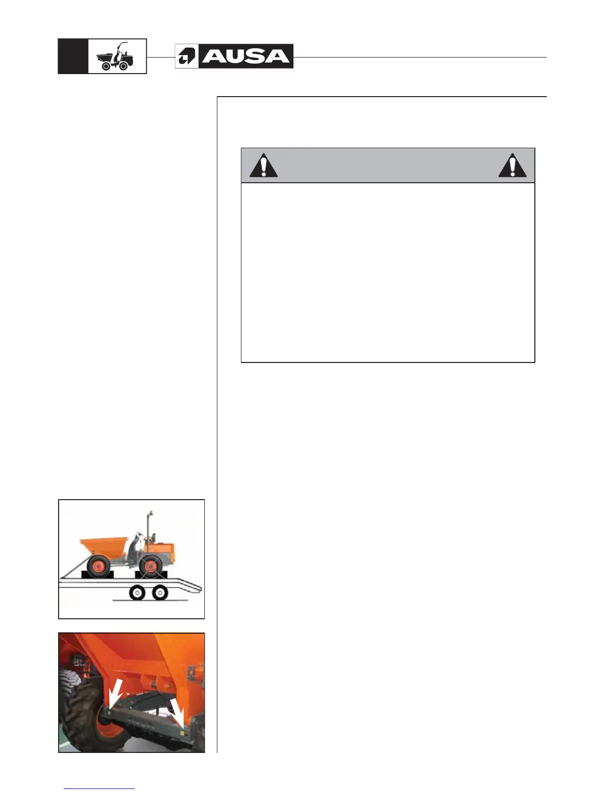 • Firmly secure the dumper to the truck bed or low loader with chains, cables