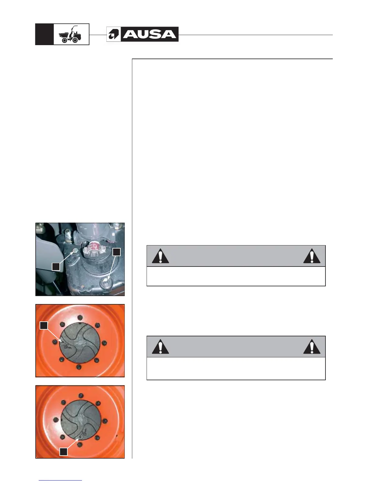 Never remove the drain plug of the final reductions when the oil is hot. The