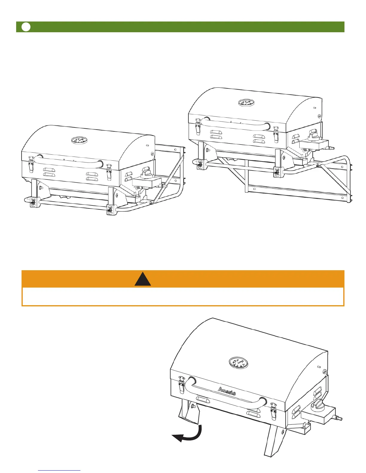 ALWAYS unfold and snap legs into the “Open” position when using grill on a table top without Hanger Bracket.