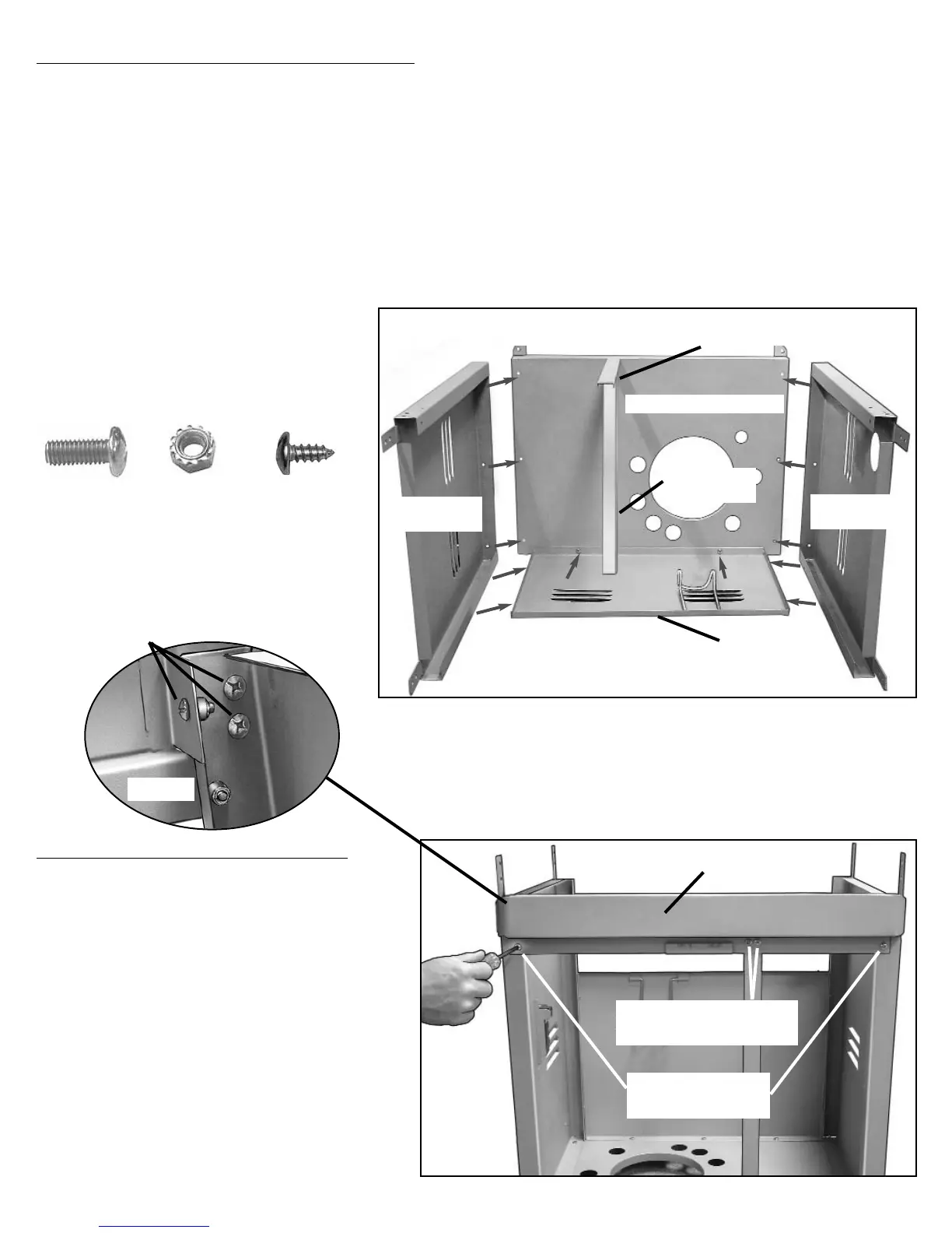 Attach Left Side Panel (14/15) and Right Side Panel (19/20) to Bottom Panel with six M6x15 Screws