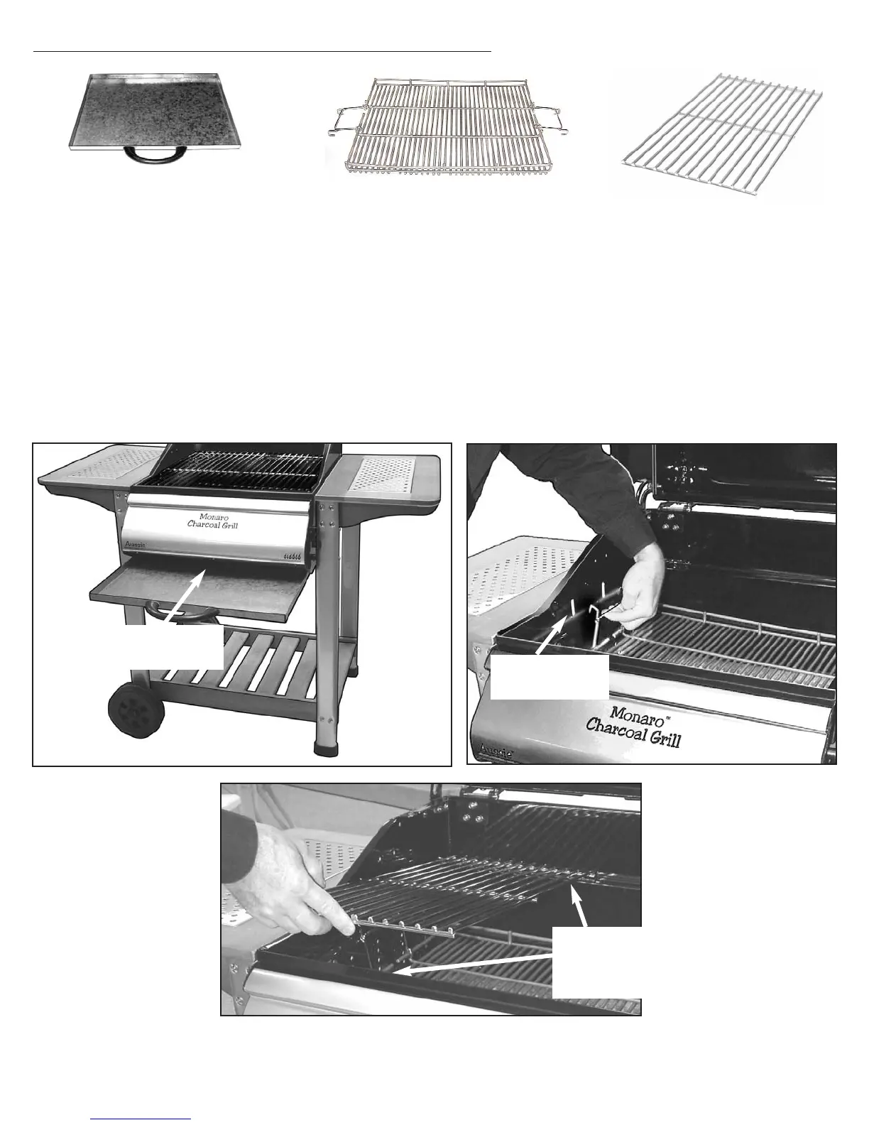 · Hang Charcoal Grate inside Grill Body by hooking the handles inside the two (2) elongated slots