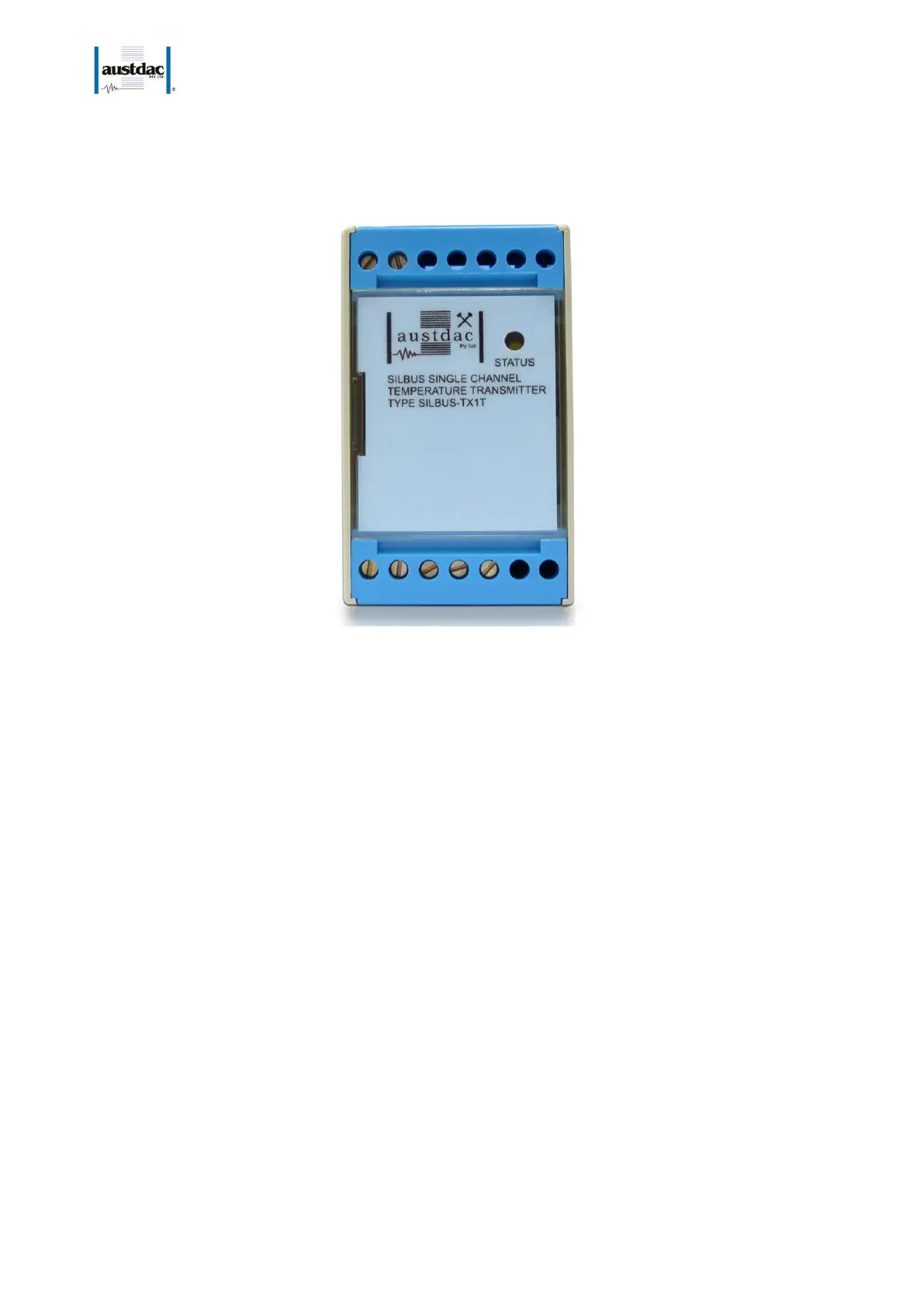 The SILBUS-TX1T front panel is located between the terminal blocks that form part of the