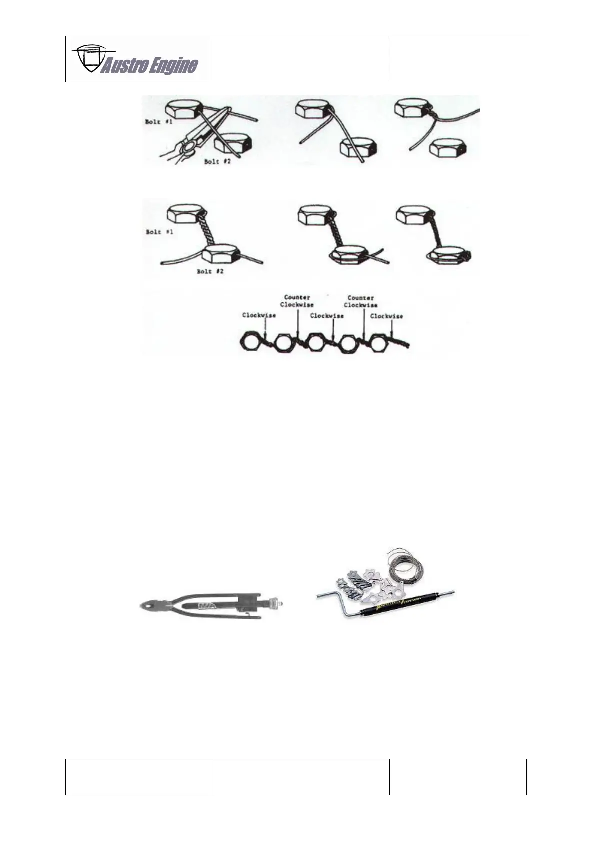 right or left hand twists. Attach the safety wire in such a manner that if the bolt or nut should start to