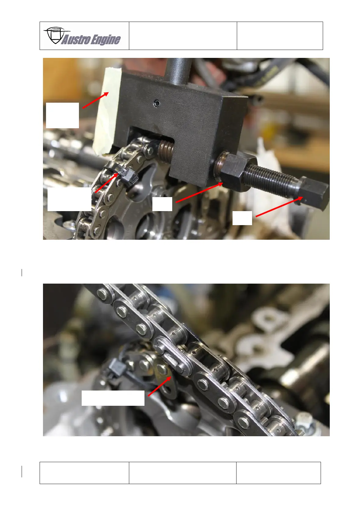 (AEP-00160). Position the chain in a way that the holes in the pin sleeves of the link are