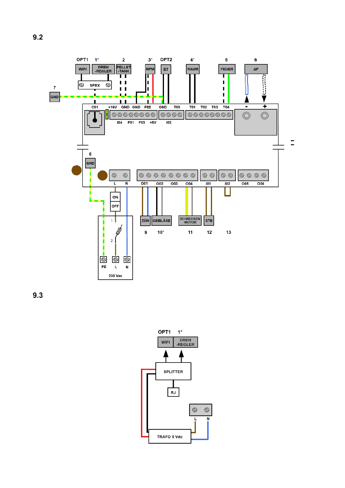 Austroflamm Clou - Modelle mit ON;OFF Schneckenmotor; Detail E-Anschlussplan; Power-Splitter