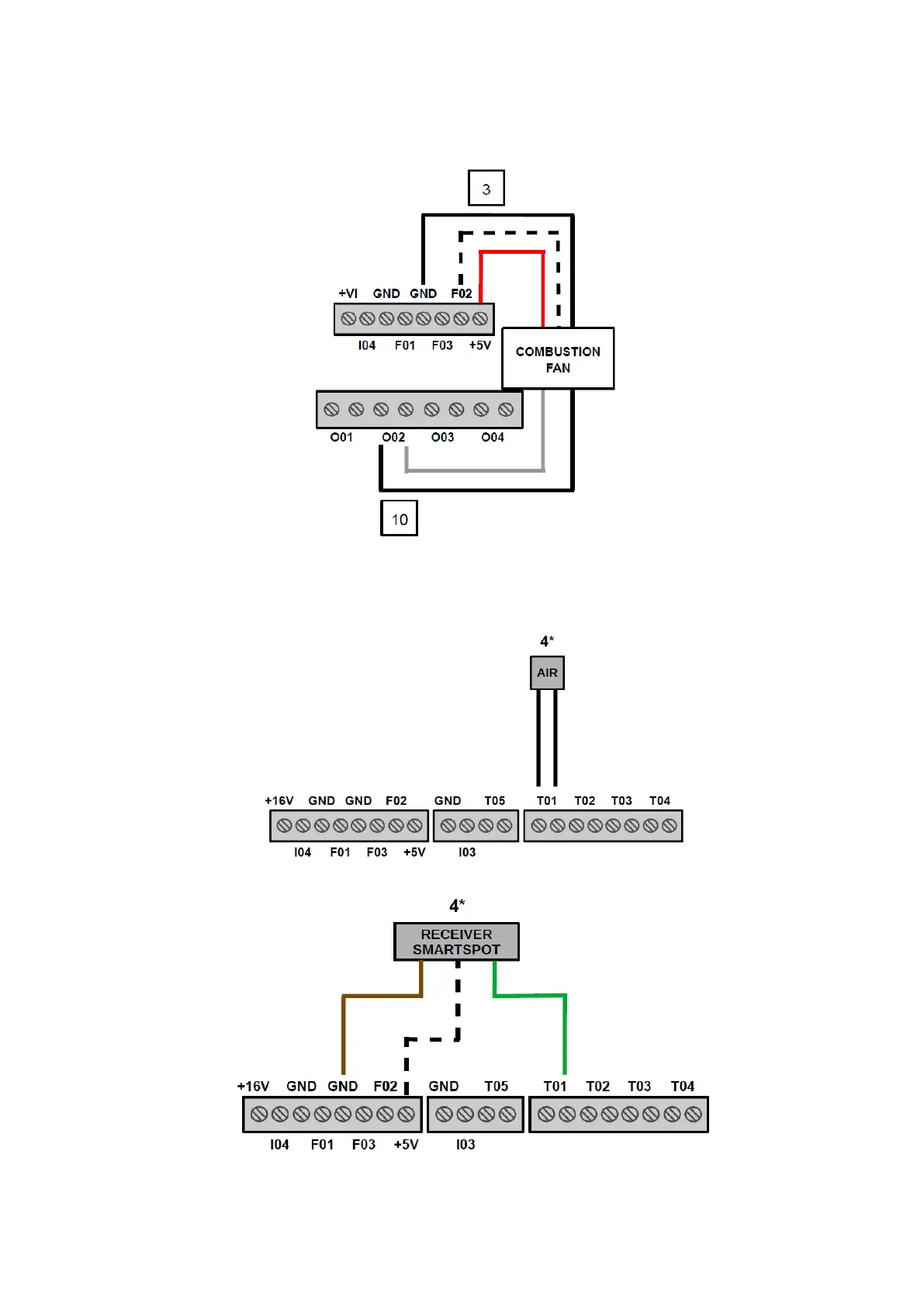 Austroflamm Clou - Combustion fan wiring; Room sensor and SmartSpot wiring
