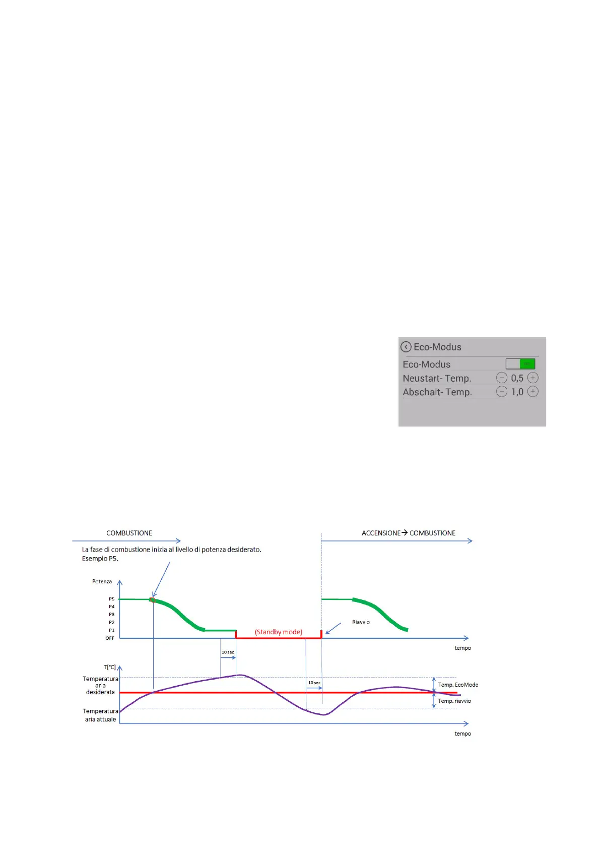 In "Modalità modulazione" (la modalità ECO è disattivata), la stufa riduce gradualmente la potenza ter-