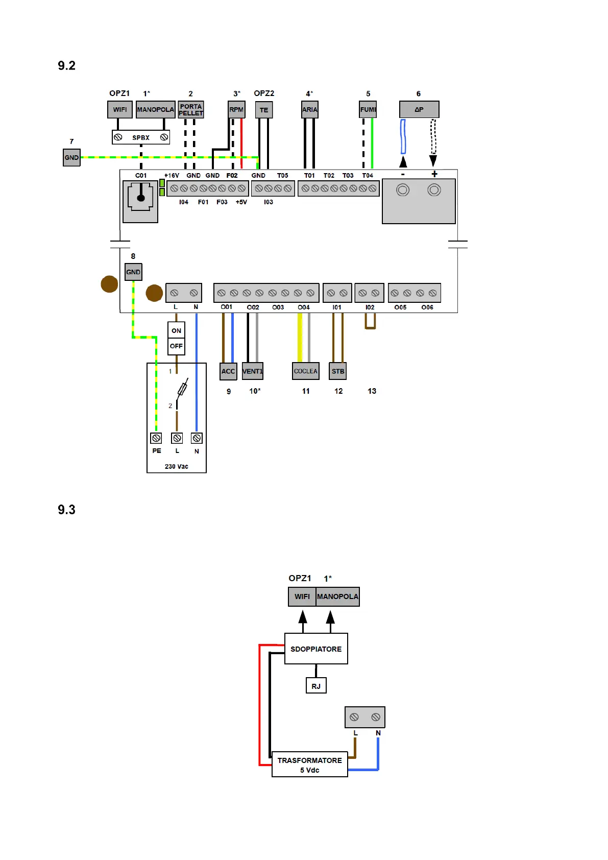 Austroflamm Clou - Dettaglio Schema Dei Collegamenti Elettrici; Modelli con Motore a Coclea ON;OFF; Power Splitter
