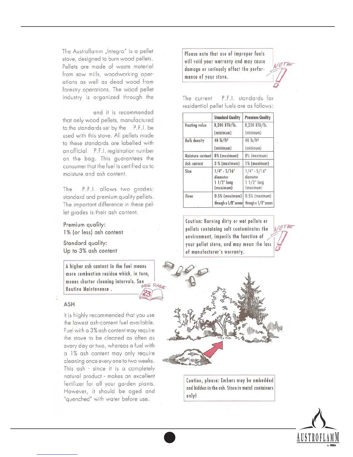 Austroflamm Integra II - About Pellets; P.F.I. Standards and Grades; Ash Content and Fuel Quality