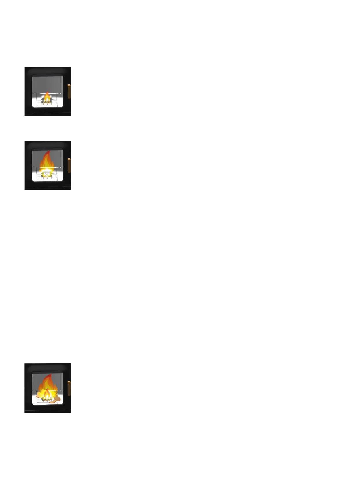 CAUTION: Make sure that the combustion recess is not completely covered with firewood