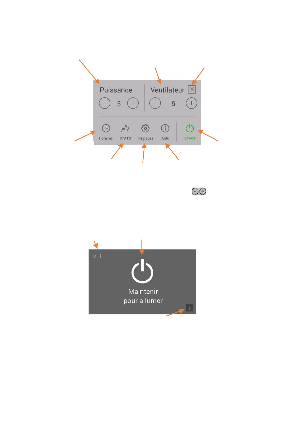 pendant plus de 2 secondes pour démarrer / arrêter le poêle.