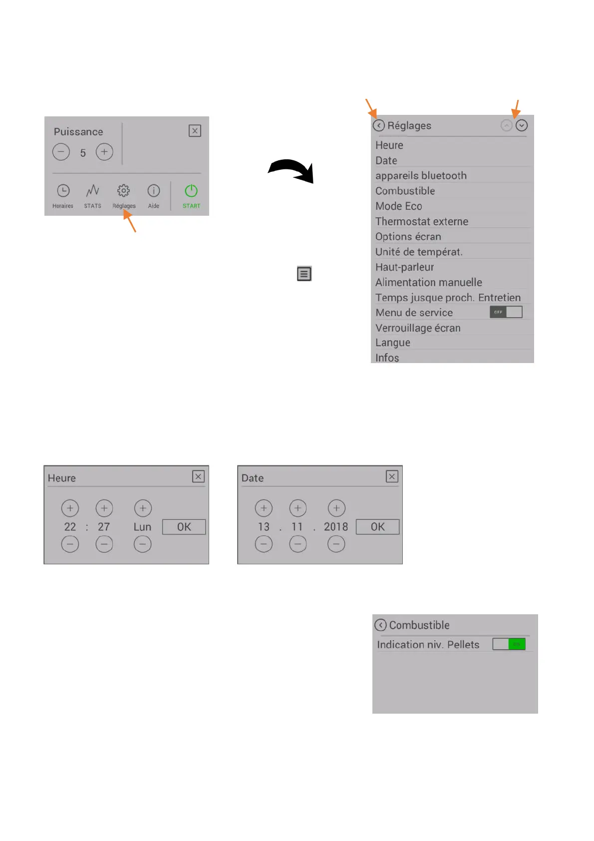 Réglez l'heure, les minutes, le jour de la semaine, le mois et l'année, puis confirmez avec OK.