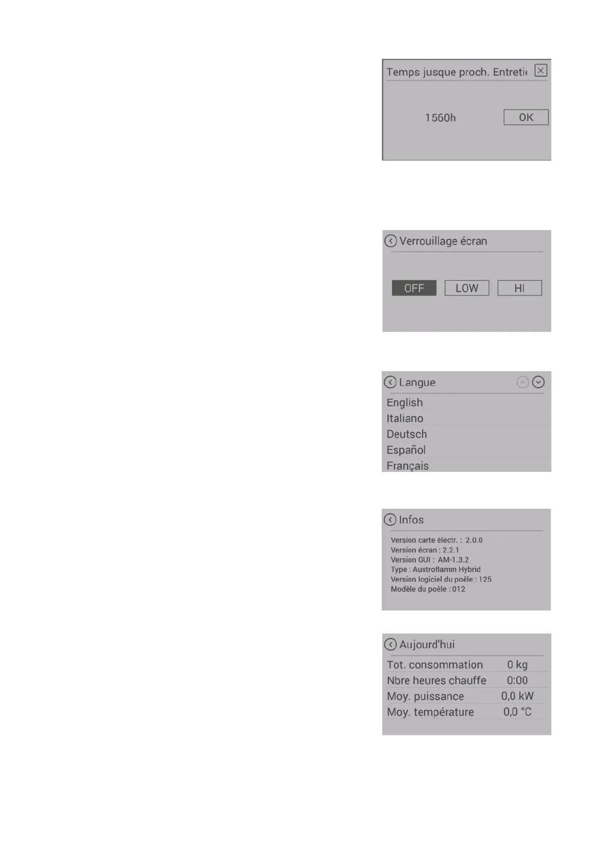 Cet écran vous indique le nombre d'heures de service restantes dont