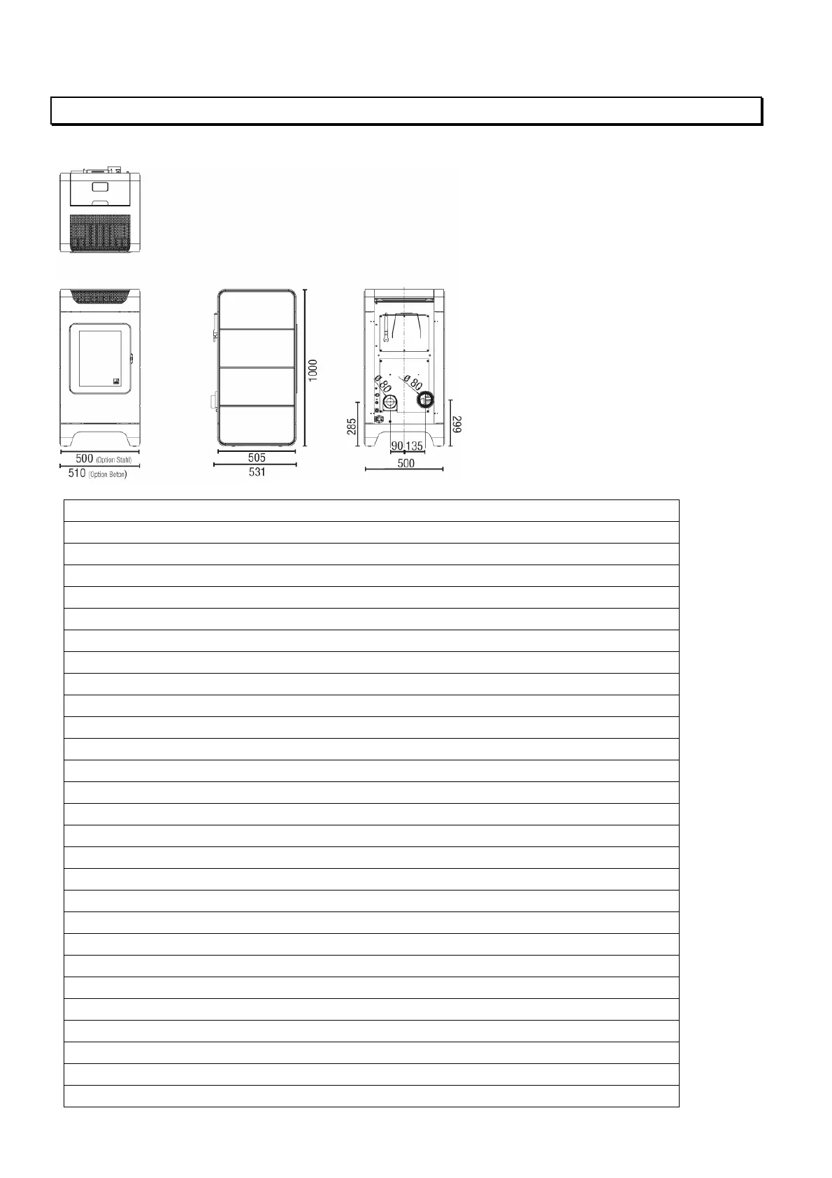H x B x T 1000 x 500 x 531 mm
