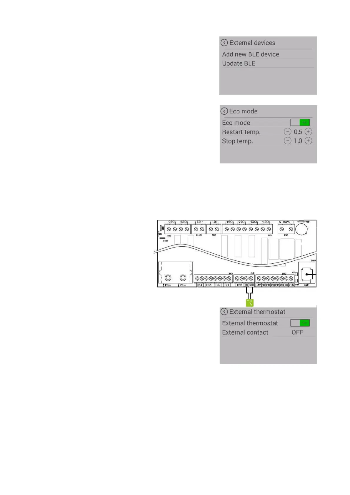 Settings/ External thermostat menu.