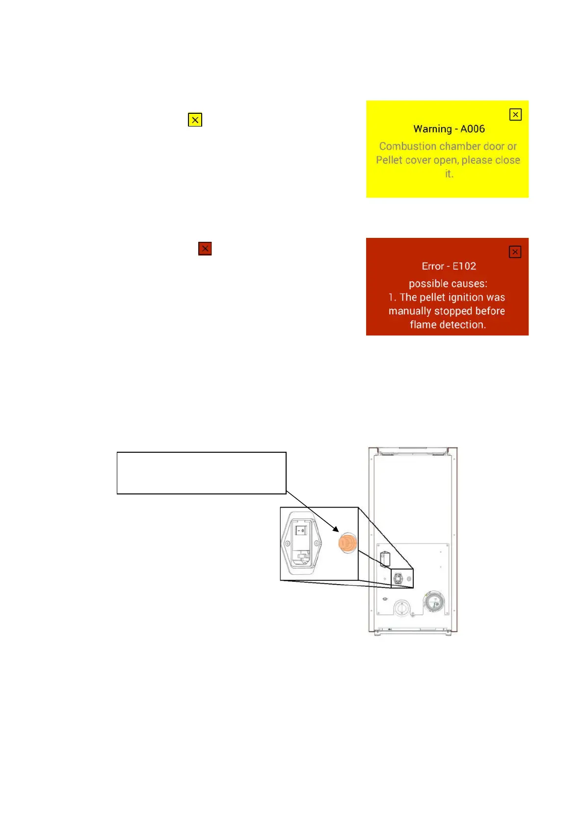 This switches off automatically if the stove overheats (temp. ≤ 105°C). If the stove shuts down, the cause must