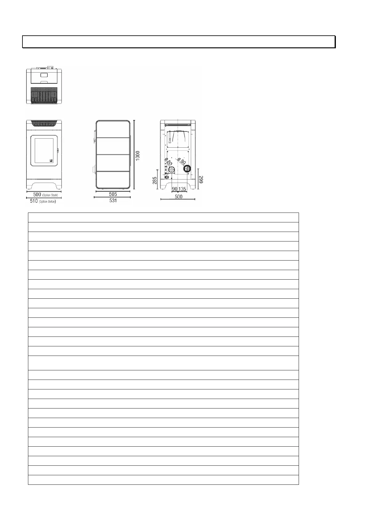 H x W x D 1000 x 500 x 531 mm