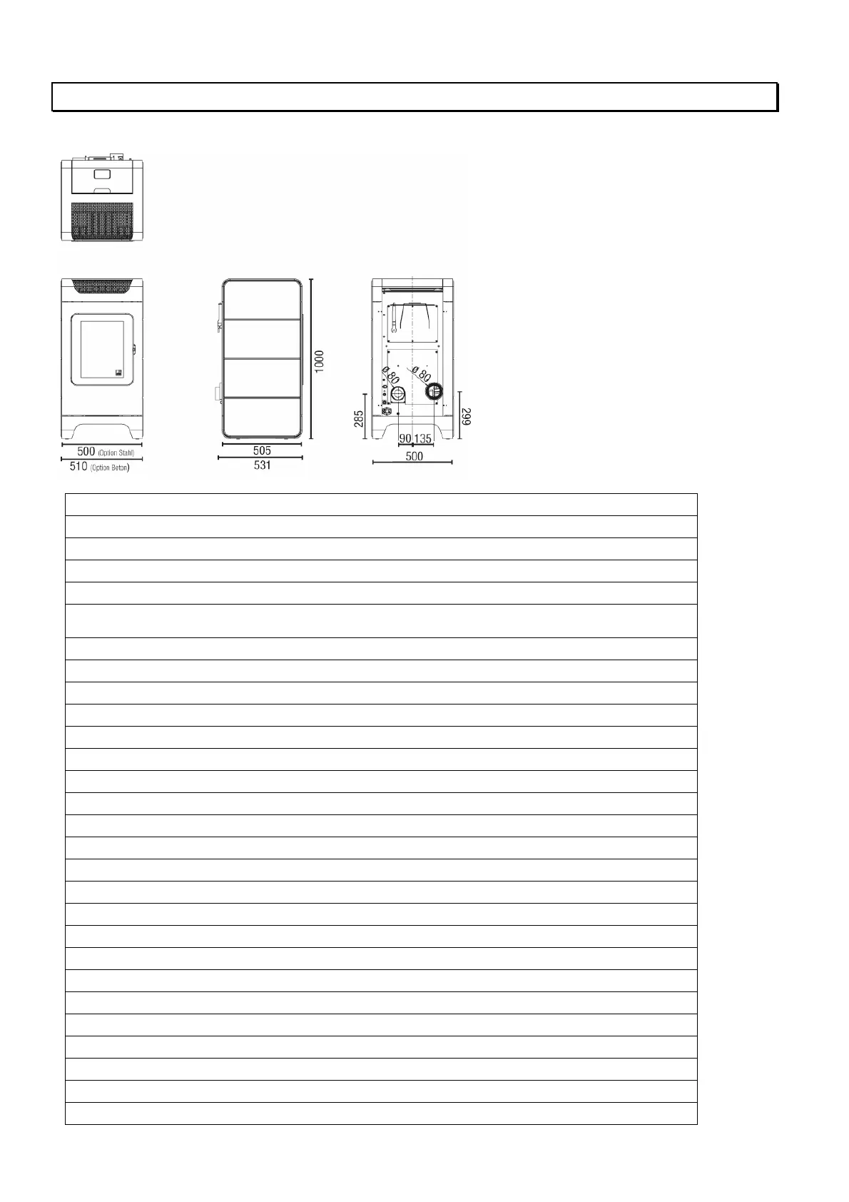 A x L x P 1000 x 500 x 531 mm