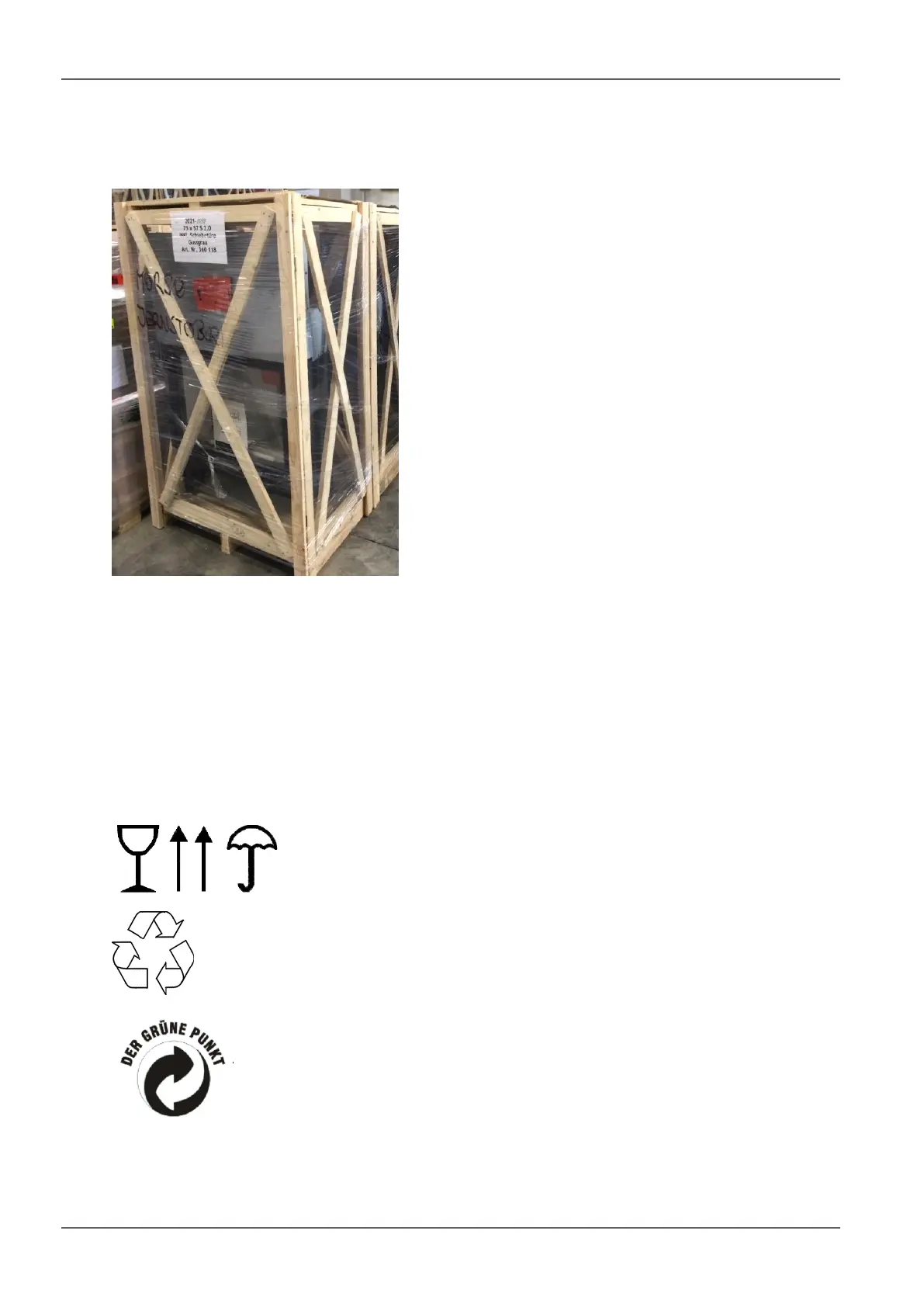 The following illustrations are attached to the crate and must be complied with: