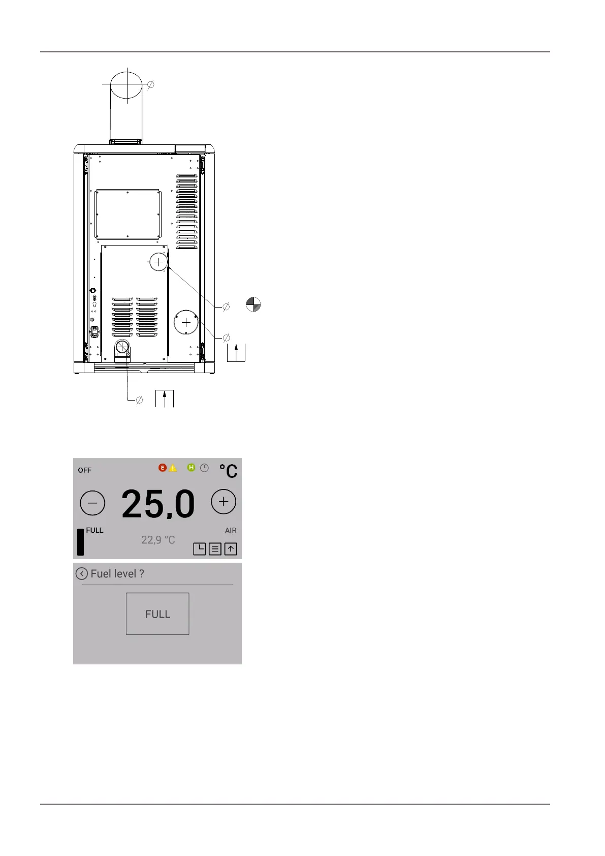 Press the filling level symbol in the room temperature dis-