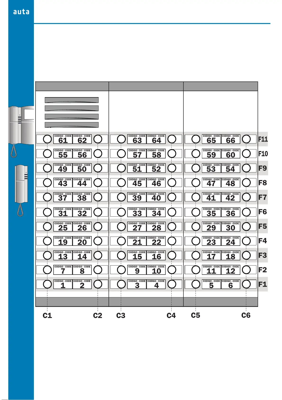 Push-Button codes indentification for a maximum of 66 housings in a digital audio and video door entry systems