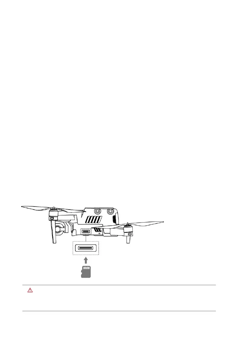 Before turning on the aircraft, insert a micro SD card into the port illustrated below.