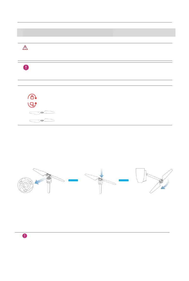 2. Press each propeller down firmly and rotate in the unlock direction to detach