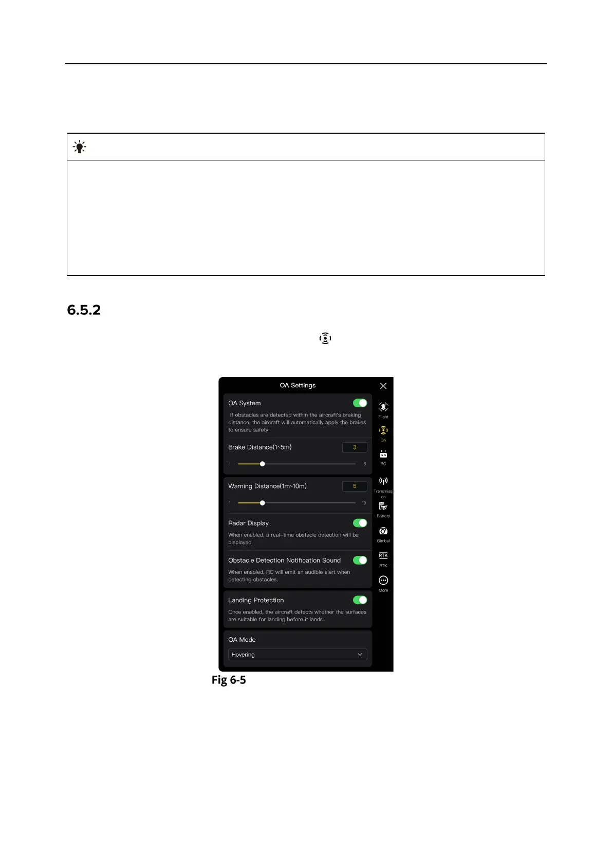 detection notification sound, landing protection, and OA mode of the aircraft, as shown below.
