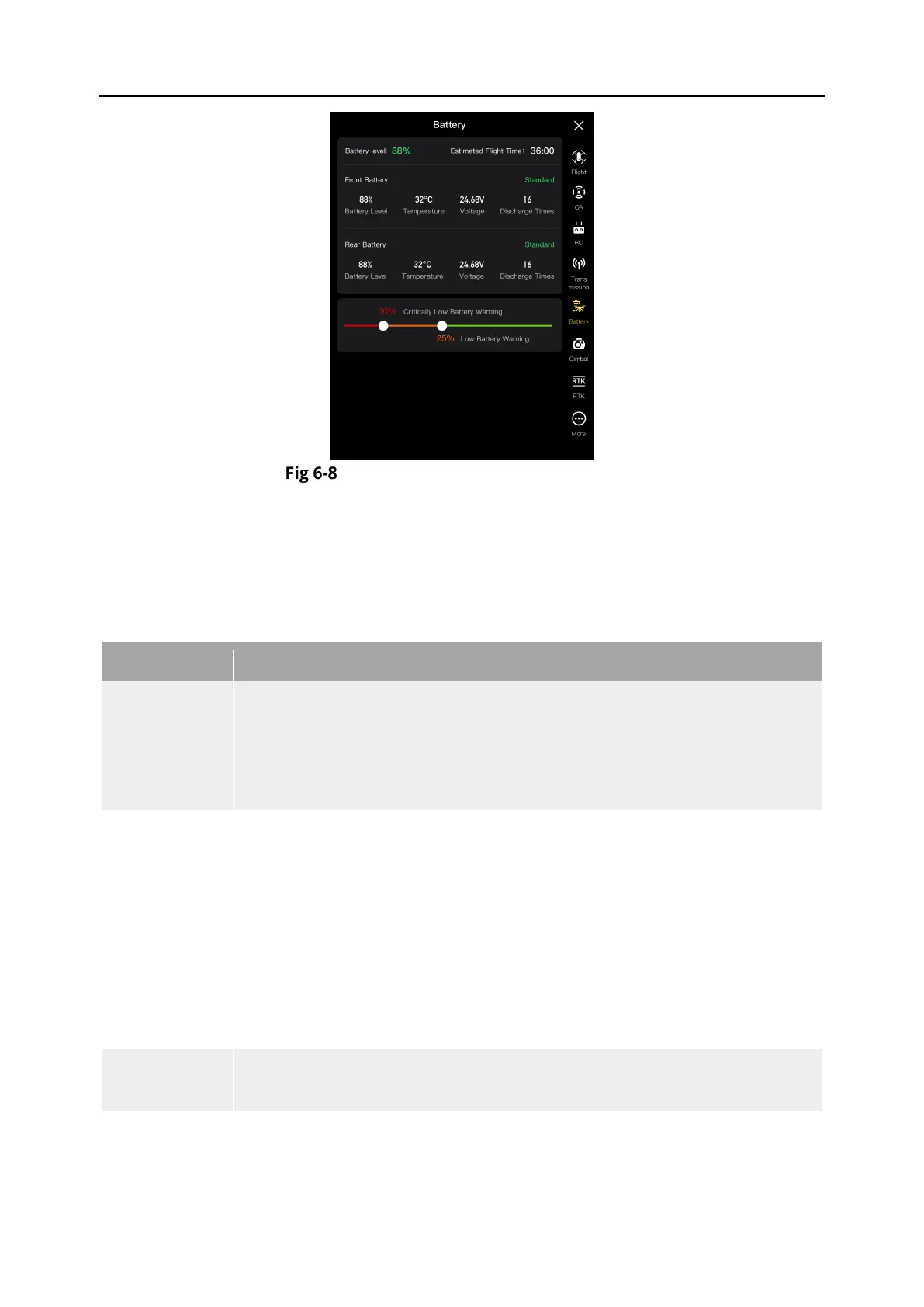 Here, you can view the real-time status of the battery and the estimated flight time of the aircraft
