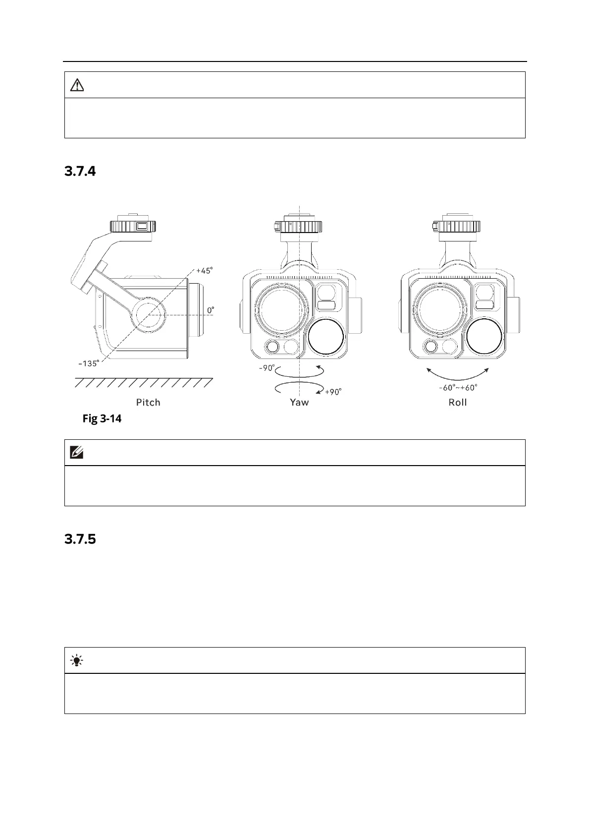 The mechanical rotation ranges of the pitch, yaw, and roll axes of the gimbal are shown below.