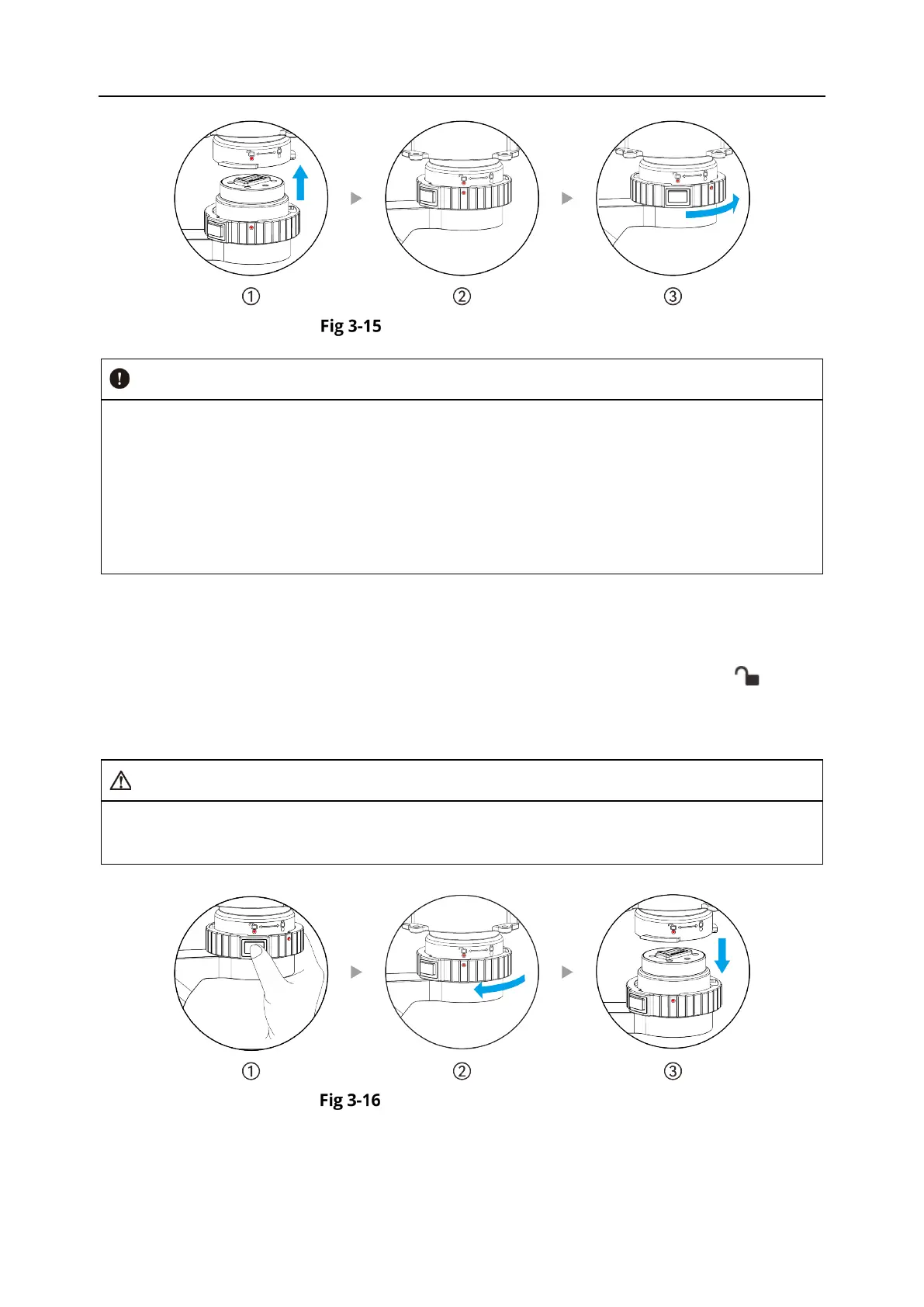 2. Rotate the gimbal lock ring to the unlocking direction with the unlocking symbol " " on the