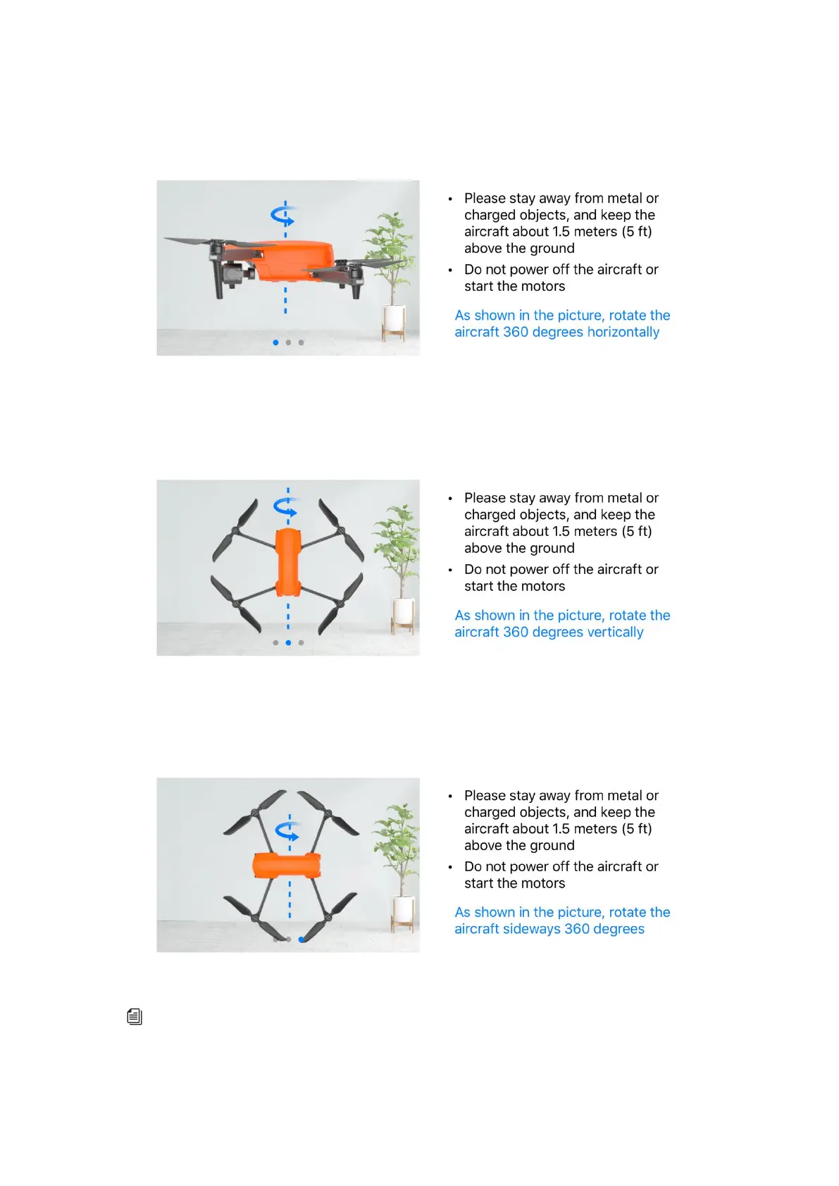 2. Hold the aircraft and make it horizontal, and then rotate the aircraft till the rear LED indicator