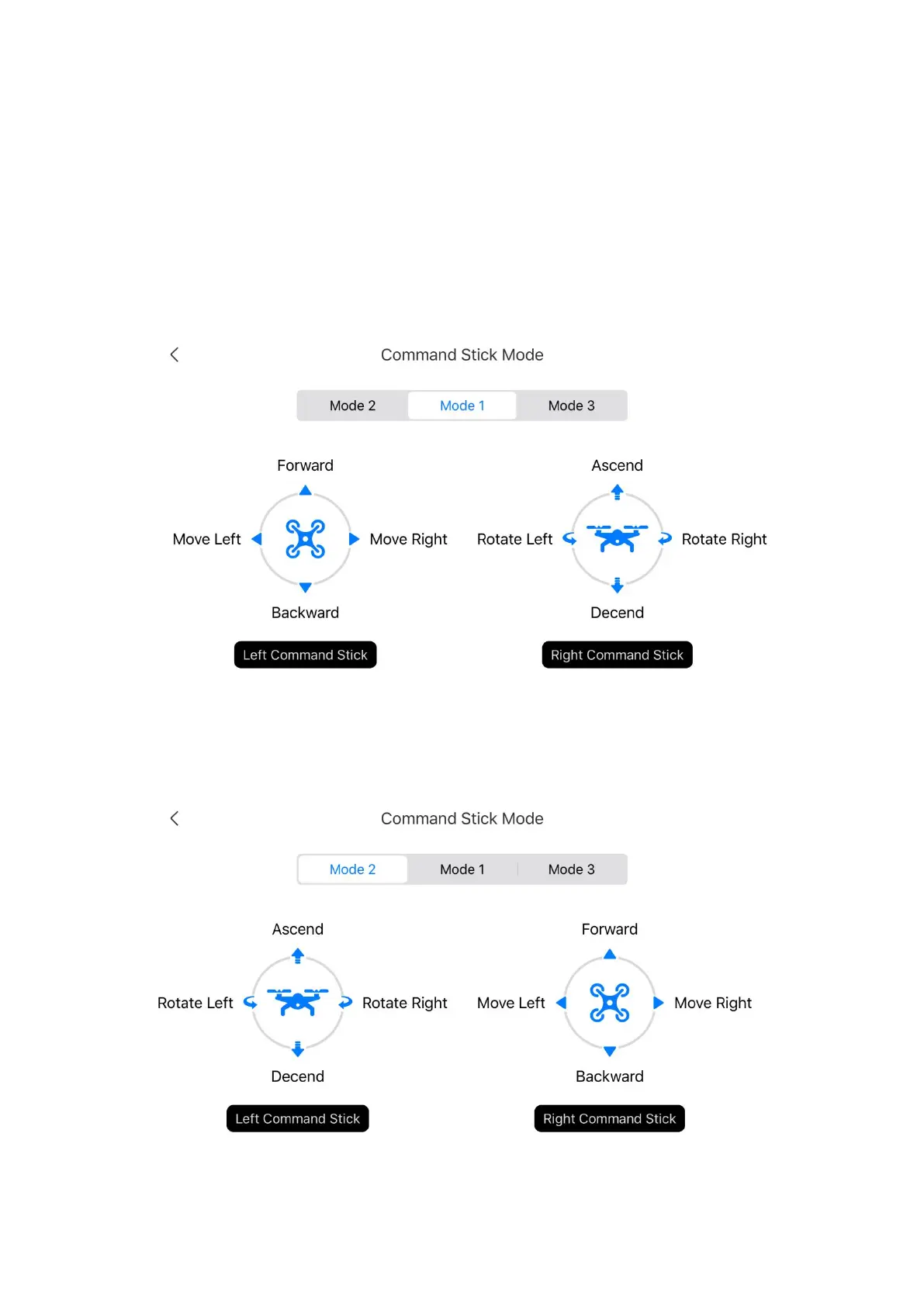 also be self-defined in Autel Sky App. The beginner is recommended to use the Mode 2 as