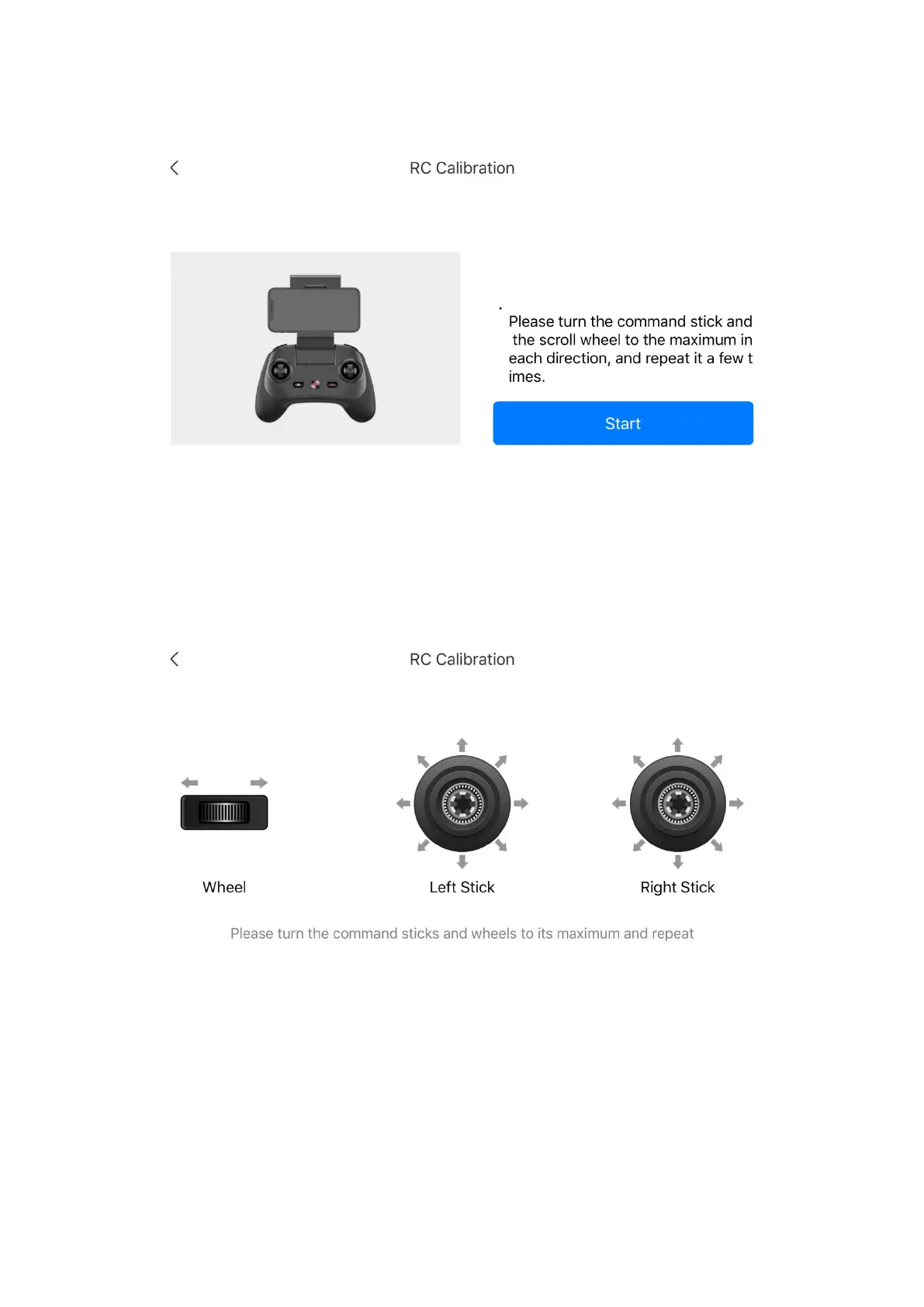 3. Move the left and right command sticks and thumbwheel in turn to their maximum extent