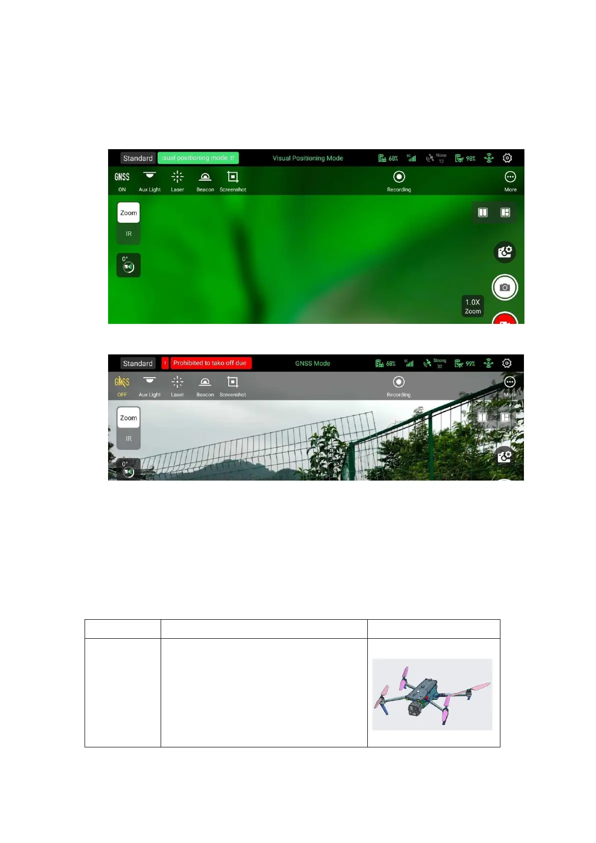 1. The "Visual Positioning Mode" will appear after turning on the aircraft. Please observe the