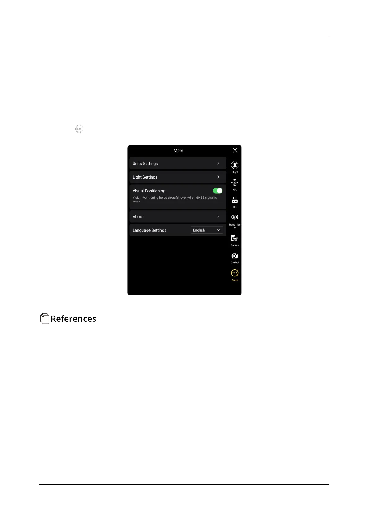 Click " " to enter the "More" interface, the user can set the units, lighting, visual