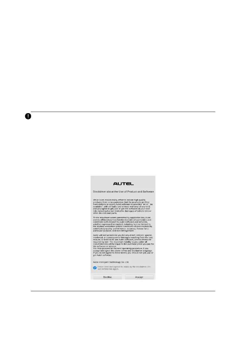 2. A Disclaimer page will appear when accessing any function on the Home