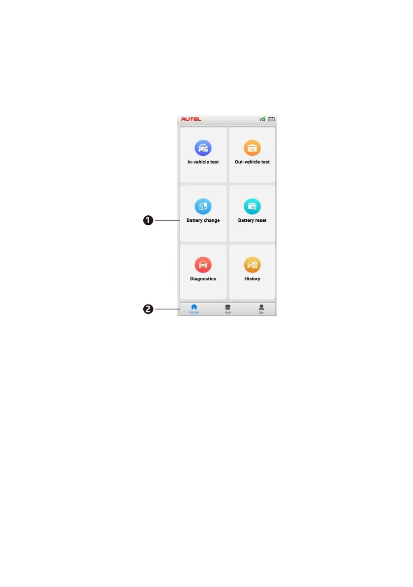 2. Navigation Button — displays Home screen, Mall, and Me. Via the