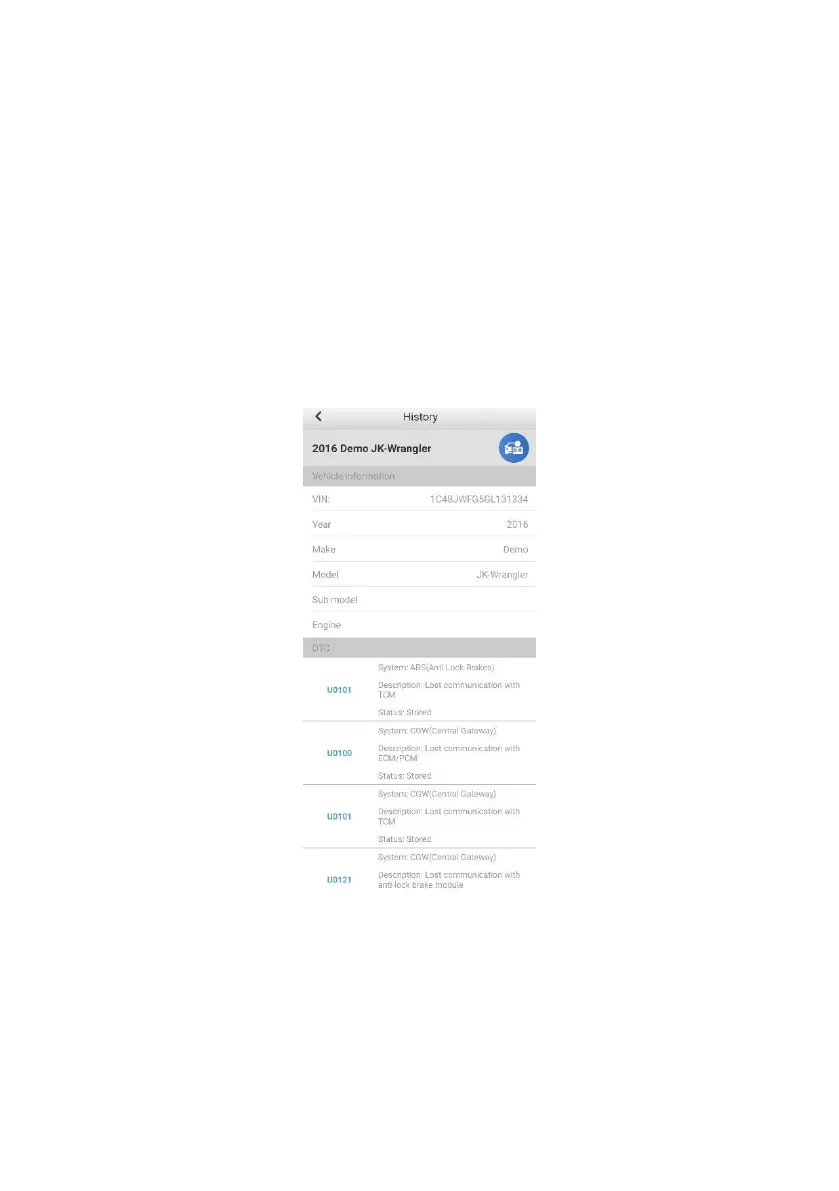 This option stores records of test vehicle history, including battery tests and