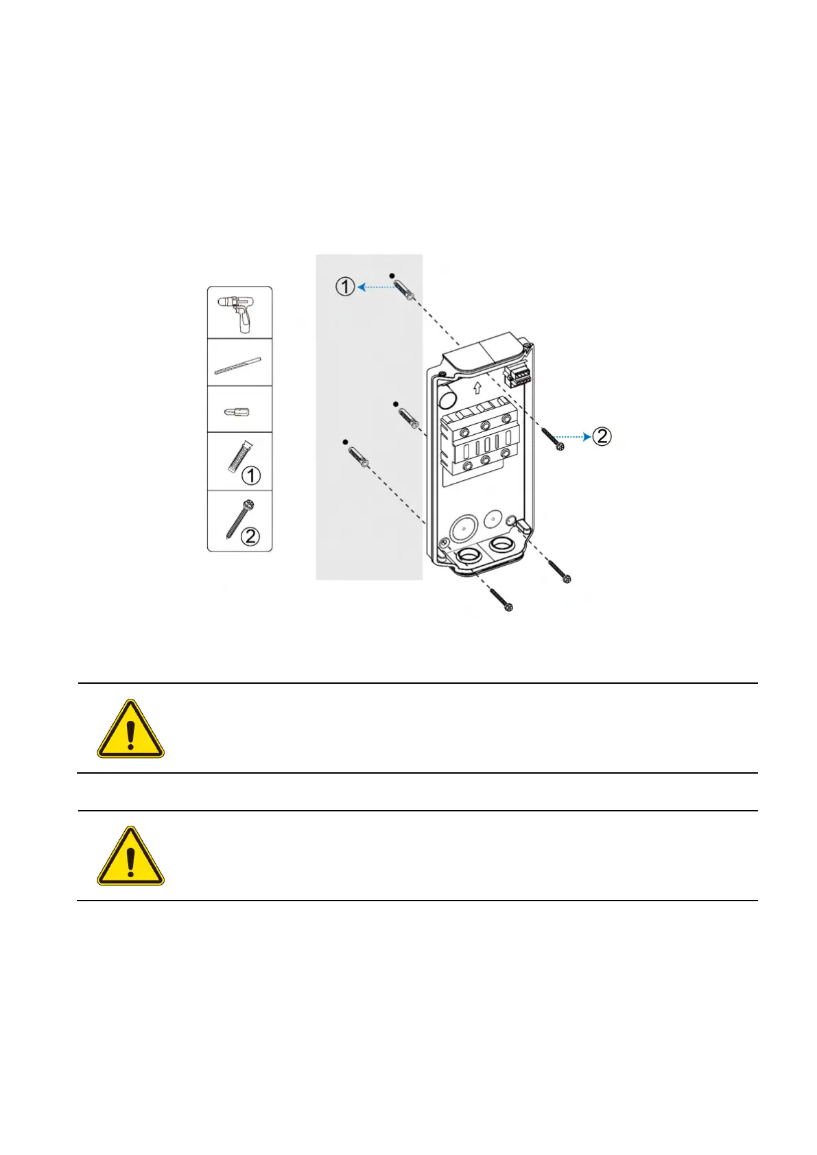 3. Place the wire box against wall aligning with the three holes. Then insert and tighten the three
