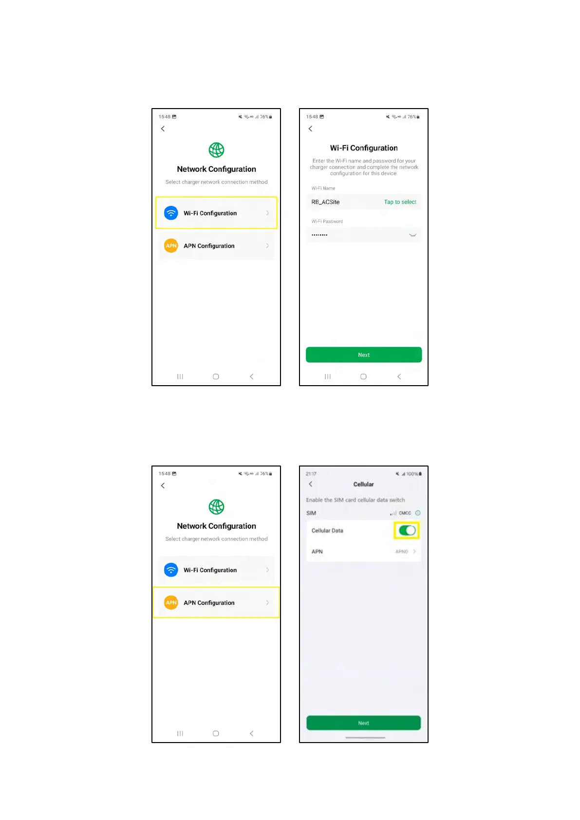 4-21 Network Configuration and APN Configuration Screens