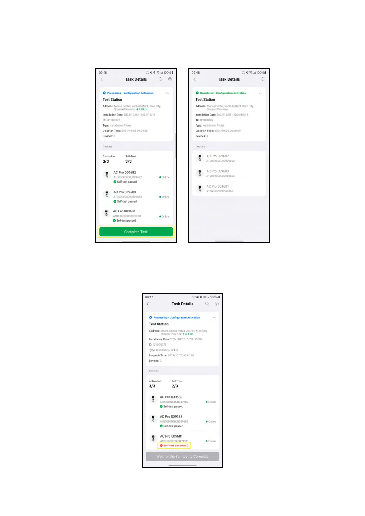 1) If all devices pass the self-test, click on Complete Task to end the task of Configuration