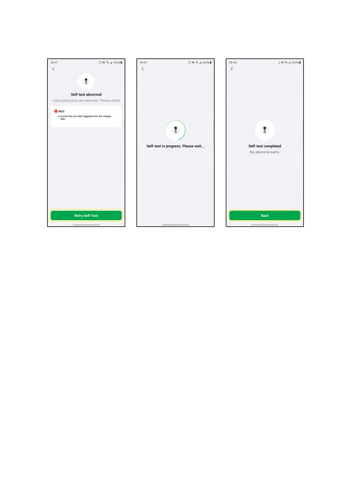 I. Check the abnormal parts shown on the screen and click on Retry Self-test. Then wait for