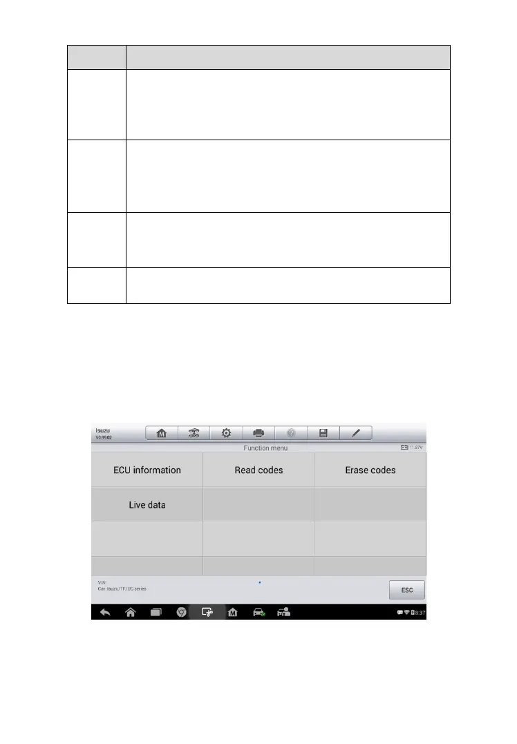 diagnostic function menu after selections are made.