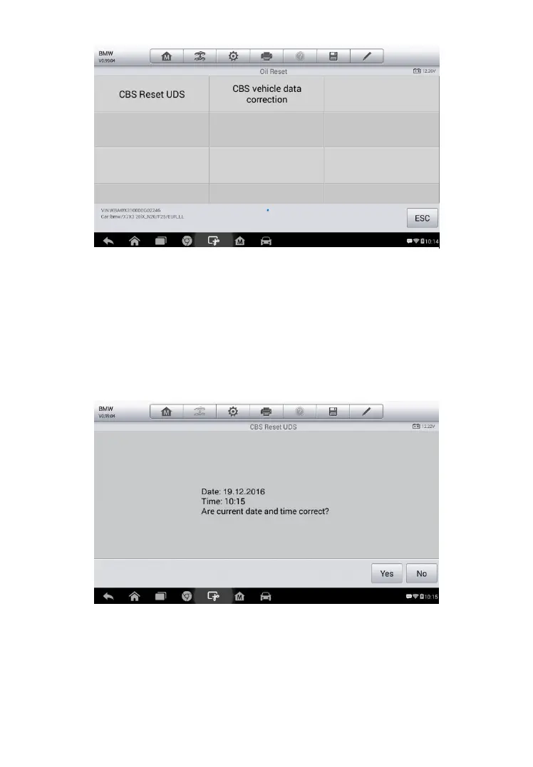 5. Tap CBS Reset UDS on the Oil Reset function list to start the
